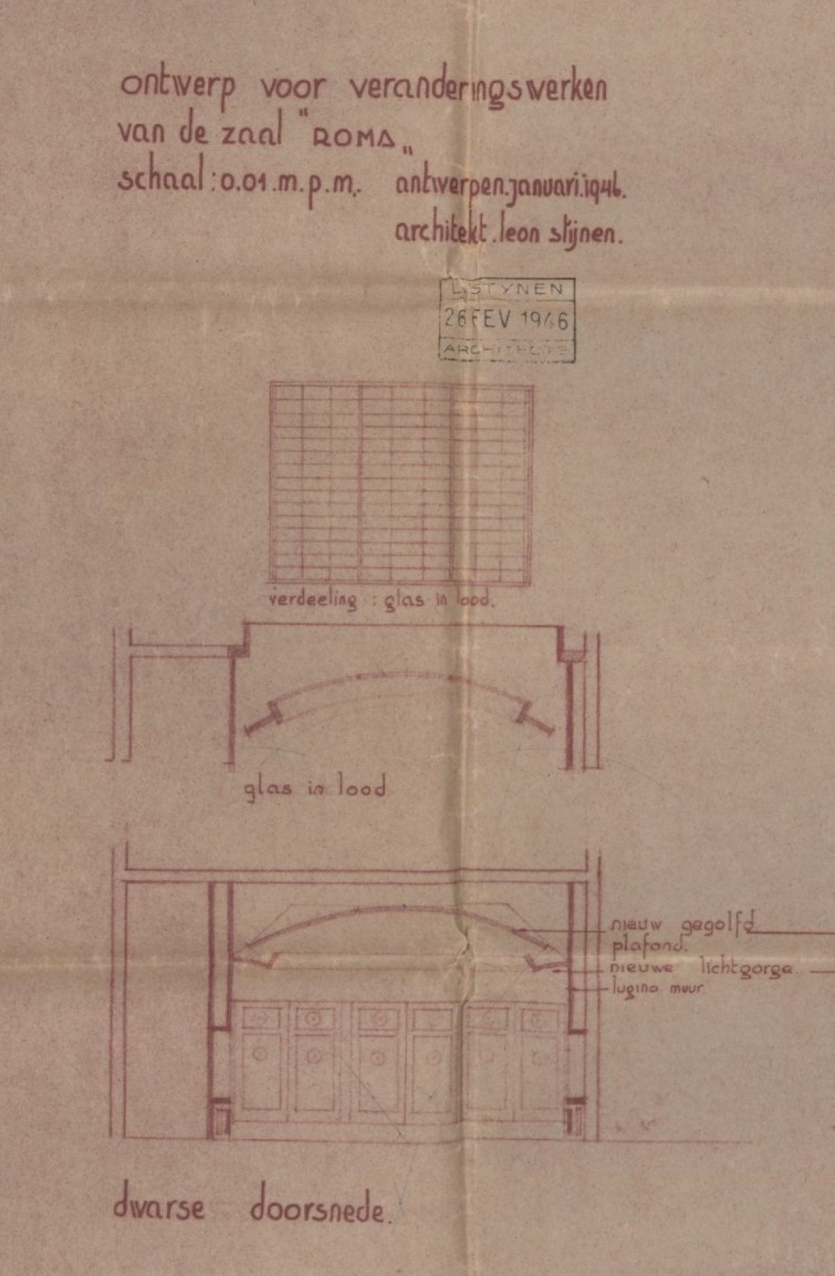 Bron: Vlaams Architectuurinstituut, archief Veranderingswerken cinema Roma: plannen, briefwisseling (1945-1947)