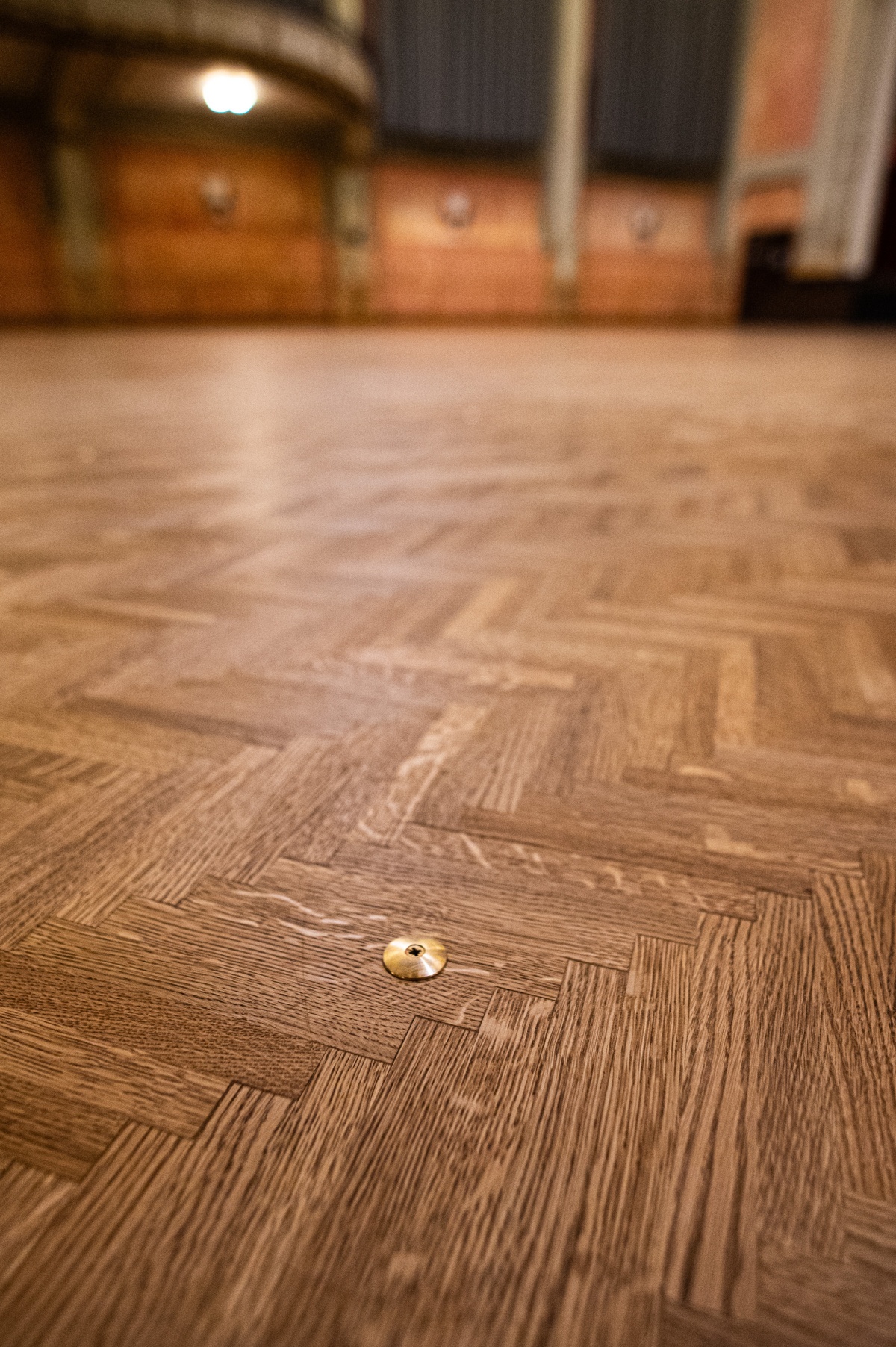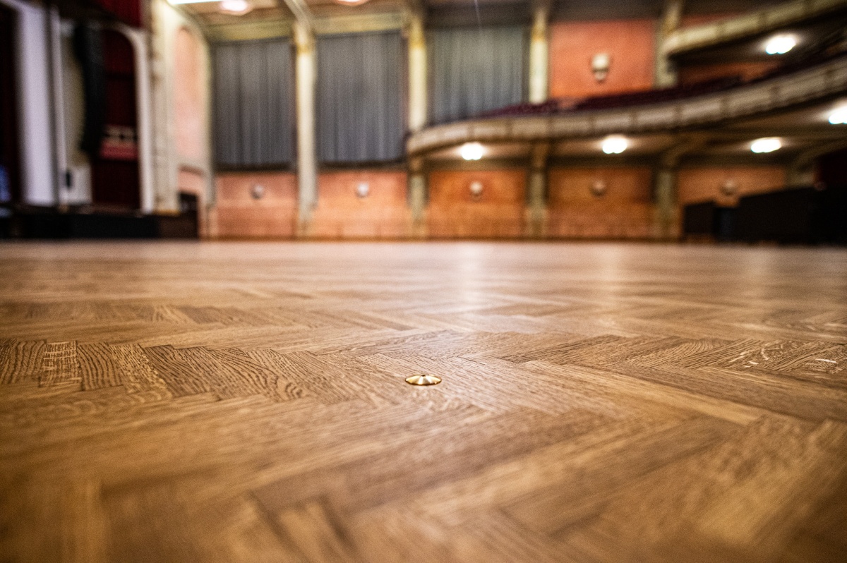 "Na een grondige voorbereiding viel de keuze voor de nieuwe vloer op een duurzame houten parket in Europese eik", legt projectcoördinator An Overath van De Roma uit. "Die werd gelegd in een stijlvol visgraatmotief dat perfect aansluit bij de authentieke, historische uitstraling van de zaal. In theorie kan deze vloer meer dan 100 jaar meegaan, al rekenen we in de praktijk op een levensduur van zo’n 60 jaar."
