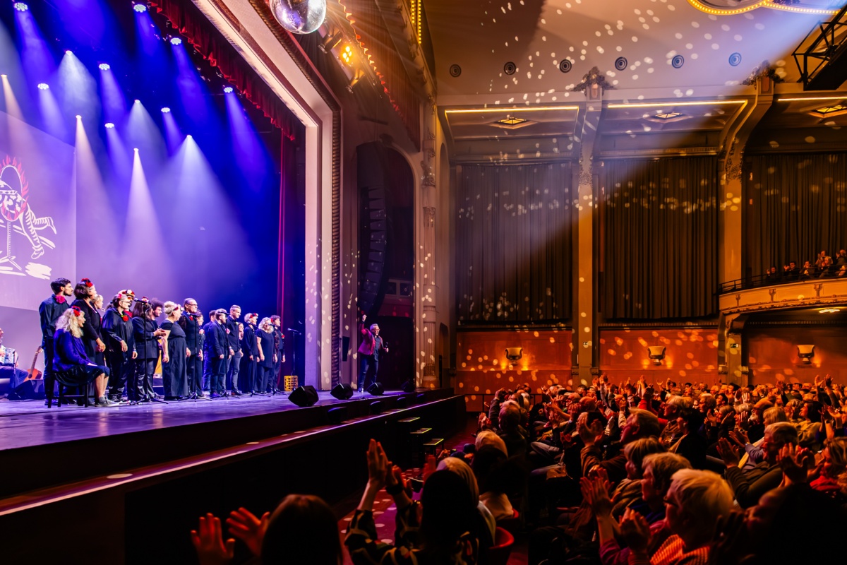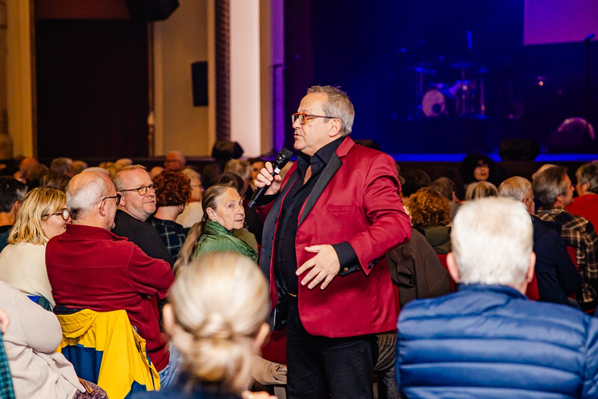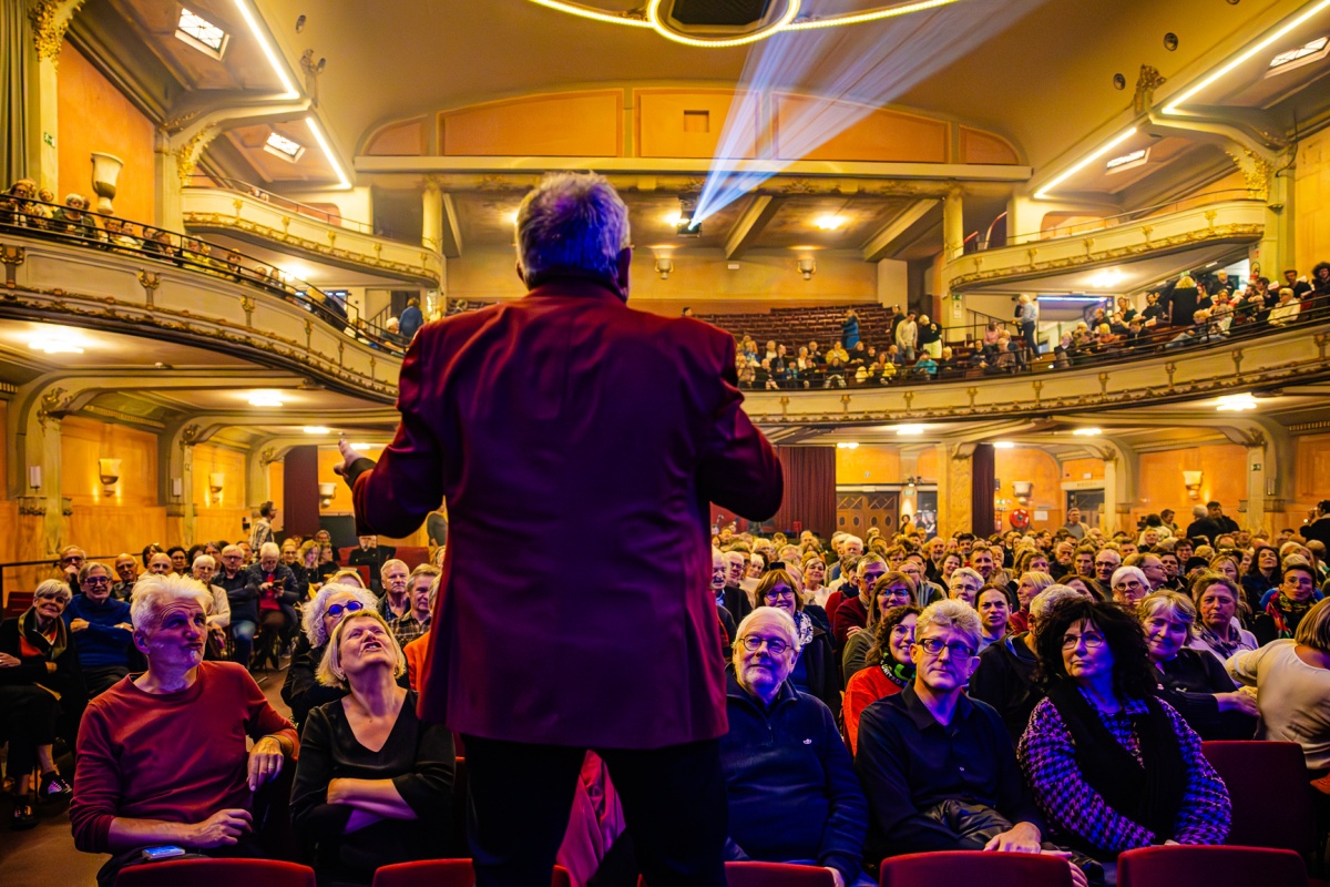 Samen met het talrijk opgekomen publiek genoot Tom Lanoye met volle teugen van zijn volkse viering in De Roma. De feestelijke avond was een prachtige ode aan de kracht van taal en poëzie.