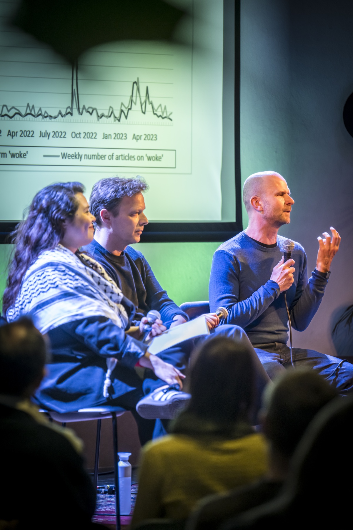 De grootste piek die de onderzoekers opmerkten vond plaats in 2022, na de eerste aflevering van De Tafel van Vier. Een van de thema’s tijdens de talkshow was ‘woke’, en presentator Gert Verhulst gebruikte tijdens de uitzending tot dertig keer toe het n-woord. Dat leidde tot grote ophef in kranten en andere media. Dhoest: “Dat is echt het moment waarop de term ‘woke’ mainstream gegaan is. Iedereen kende het woord na die uitzending, omdat er zoveel rond te doen was.”